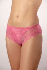 Calcinha alta e cavada com frente em microfibra acetinada sobreposta por renda. Fica lindo e dá firmeza. Contorno das pernas em renda sem elástico para não marcar. Parte de trás em microfibra acetinada para maior conforto. Rendinha aplicada em todo o contorno da cintura com elástico embutido para maior firmeza. Logo metálico aplicado na parte de trás. Fundinho em algodão 100%.