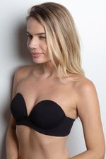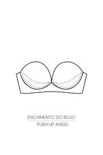 Sutiã tomara que caia em microfibra Tecno com efeito Push Up e decote profundo. O bojo com enchimento destaca os seios e aumenta um tamanho. As laterais firmadoras reforçadas com Tule Power e elásticos largos proporcionam ótima sustentação. A aplicação de silicone sobre o elástico na parte superior das costas garante aderência. Alças opcionais. Fecho com 4 regulagens. Logo metálico aplicado atrás. Compatível com Extensor B.